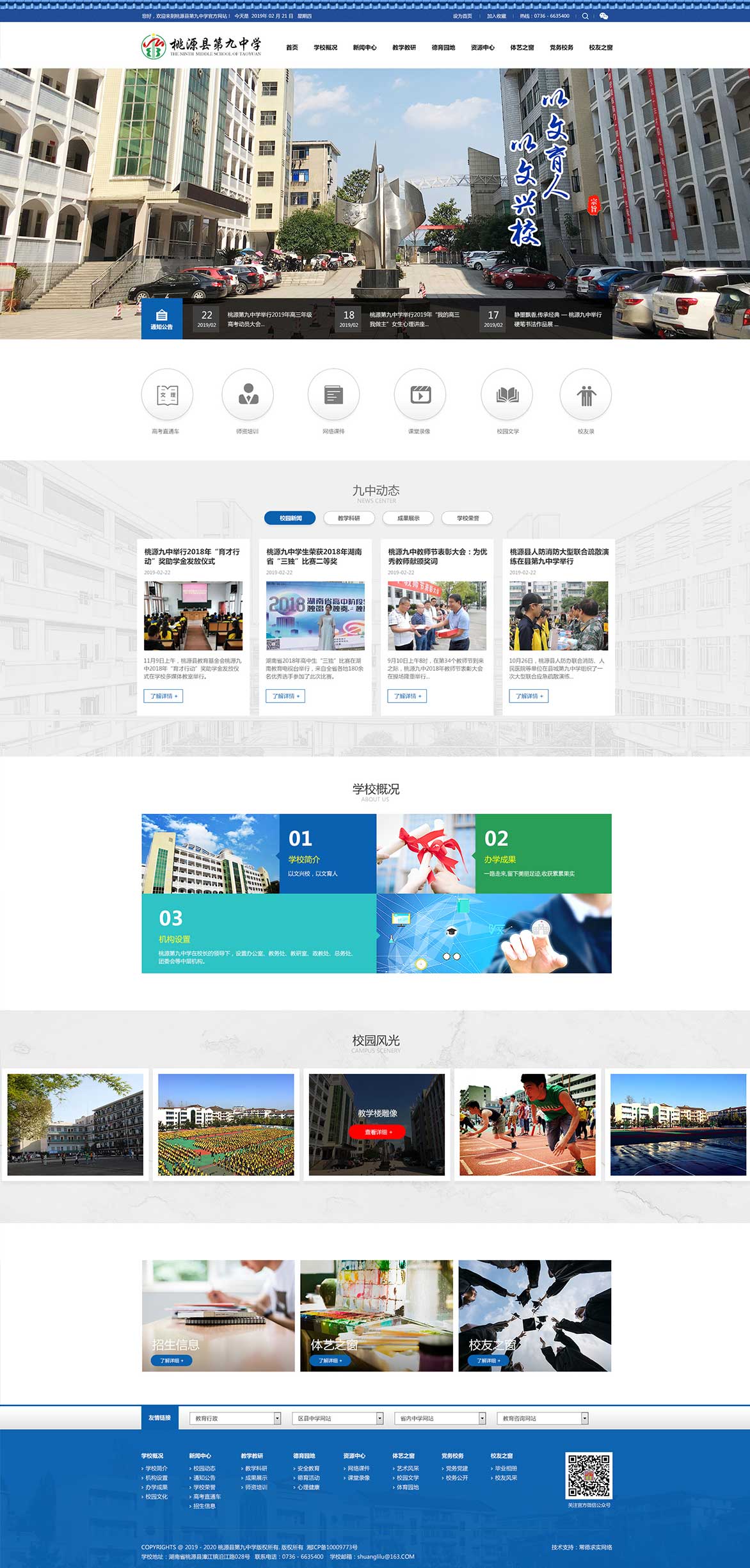 桃源縣第九中學(xué)坐落在桃源縣城漳江鎮(zhèn)沅水之濱,創(chuàng)建于1982年,前身為桃源縣城關(guān)中學(xué),1999年晉升為市級示范性中學(xué)。現(xiàn)有教學(xué)班67個,學(xué)生3940人,教職工324人。 學(xué)校校園面積70余畝,教學(xué)樓、電教樓、學(xué)生公寓樓、學(xué)生食堂等教學(xué)生活設(shè)施齊全,儀器室、實驗室、圖書室均達國家二類標準。近年來,投入1000多萬新建了高標準運動場,重修了校門和高三教學(xué)樓,辦學(xué)條件全面改善,校園環(huán)境更加宜人。